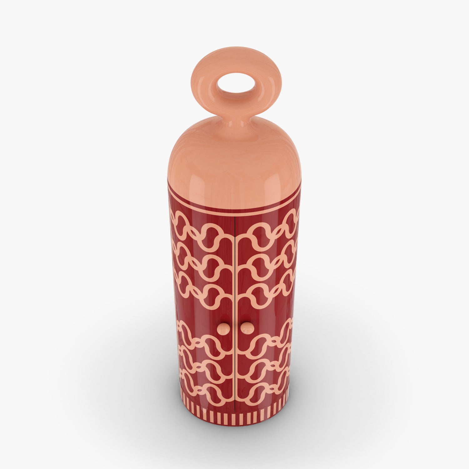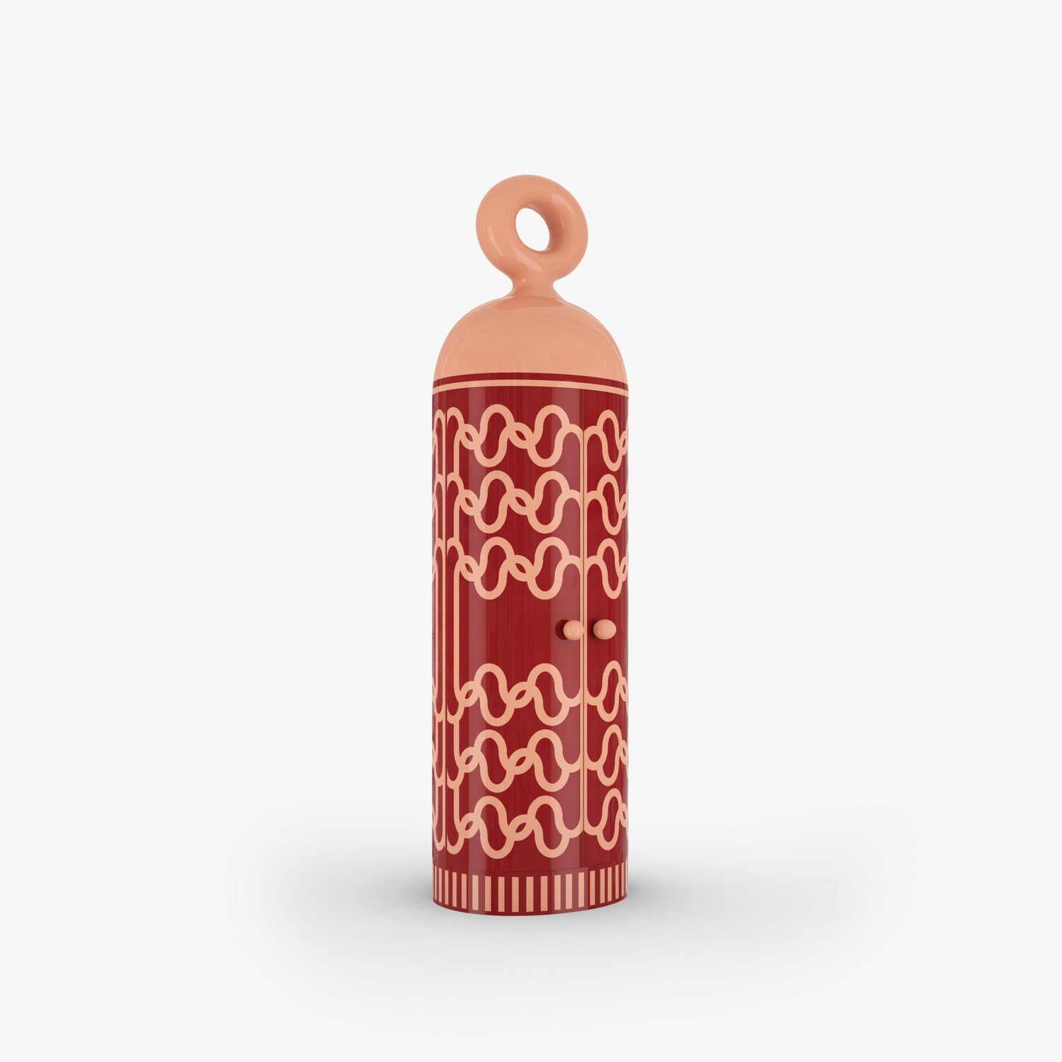 Madame Verdoux is a splendid cabinet from the Vanilla Noir collection designed by Matteo Cibic with lace inspired motifs and rich leather interiors. It can be used as a bar or a storage cabinet.