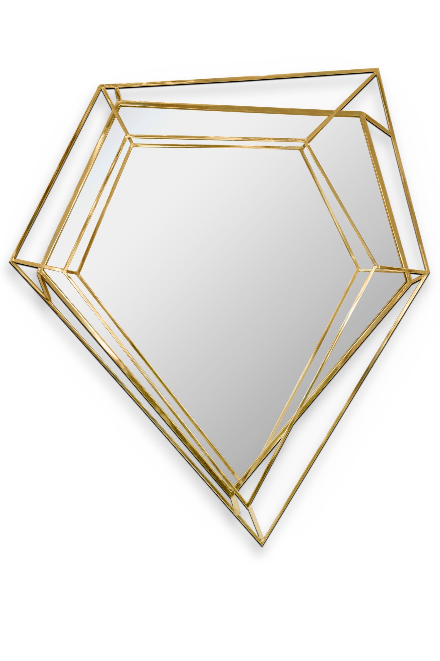 The ultimate combination of geometry and design, inspired by the asymmetrical and dazzling shapes of a Diamond rock. The use of a polished brass structure enhances the luxurious element within this object.