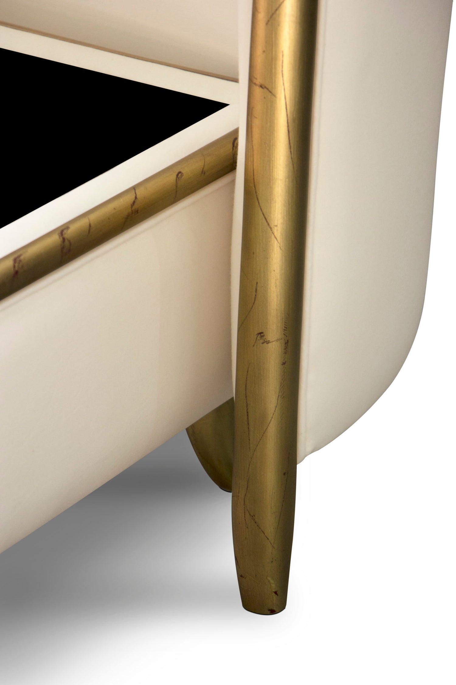 As KOKET’s original boudoir temptress, the Forbidden Bed embodies all that is sultry and seductive. The sensuous union of the lips and body bring out emotions which lead to enticement and temptation, just like a magnificent moment that never ends. Hand carved fully upholstered headboard delicately accented with metal leaf.