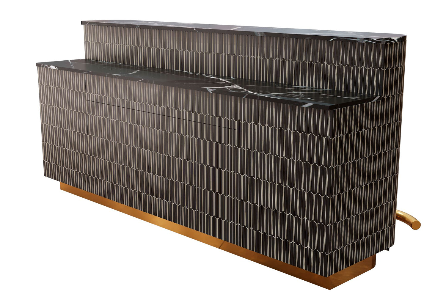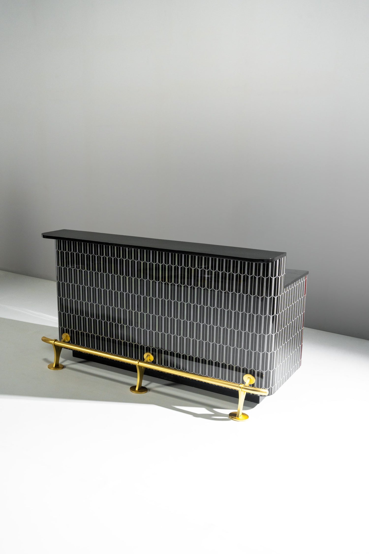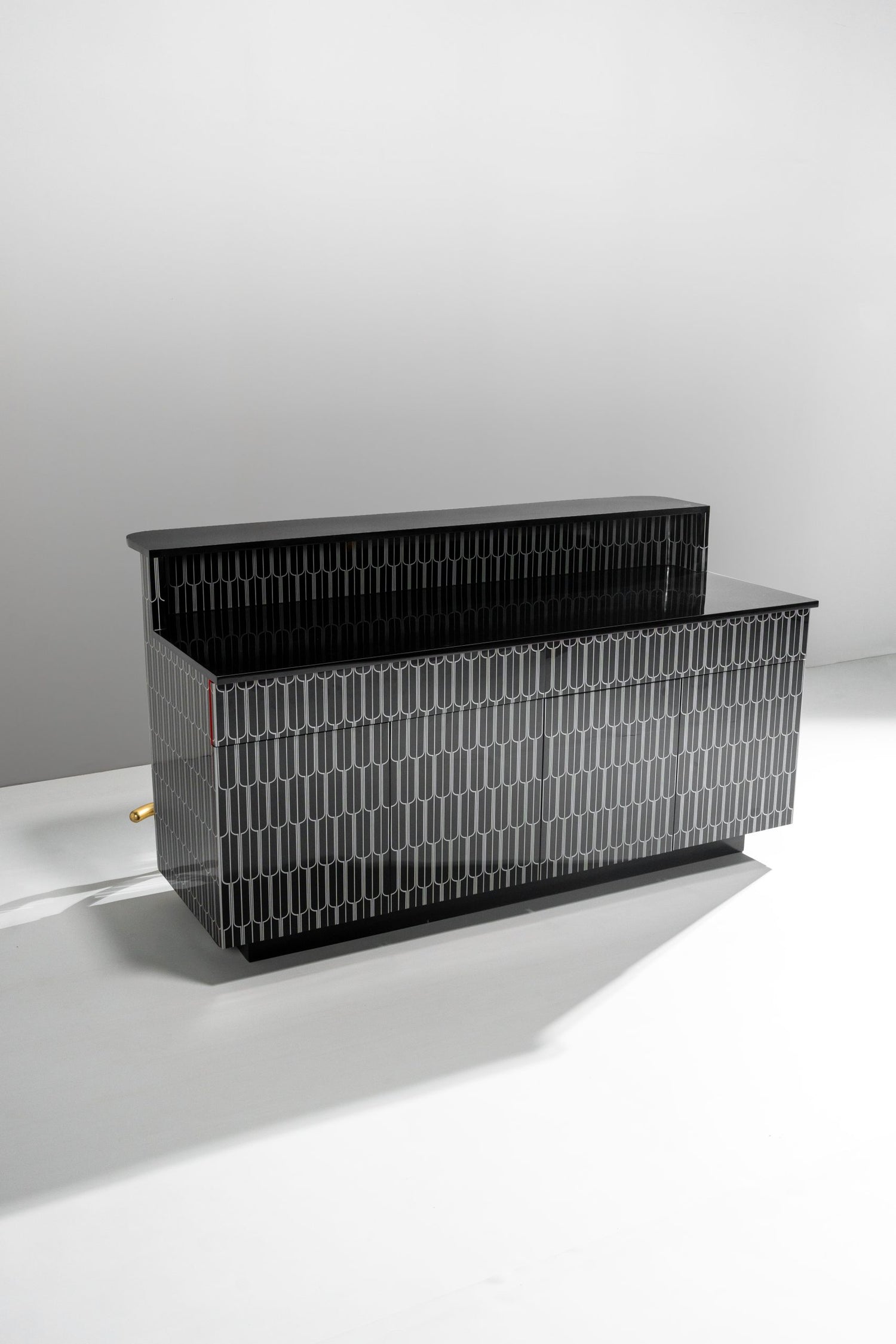 Rising bar is designed in resin inlay with drawers and shutters to hold a functional bar. The size can be customised to fit your space.RISE ABOVE THE REST