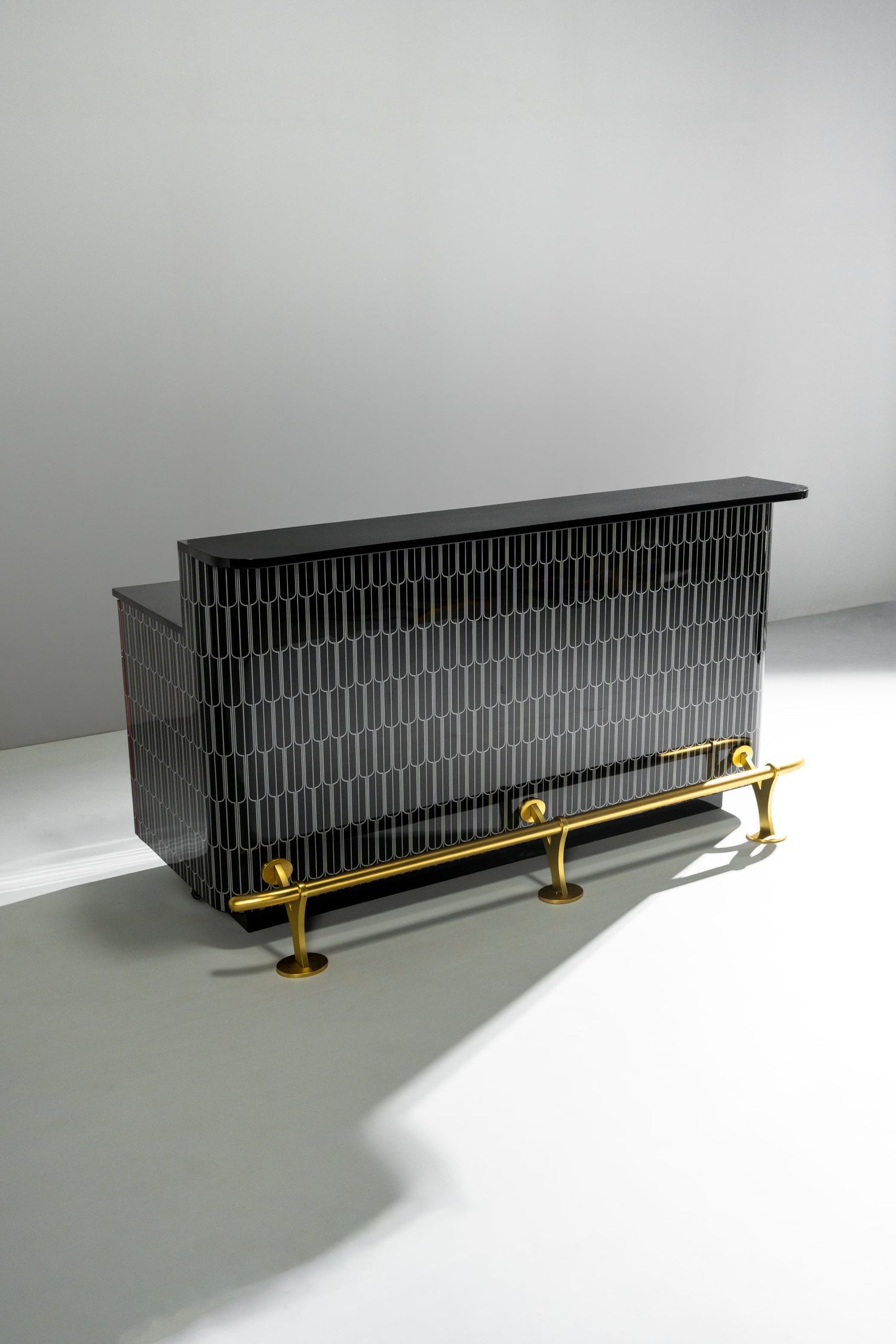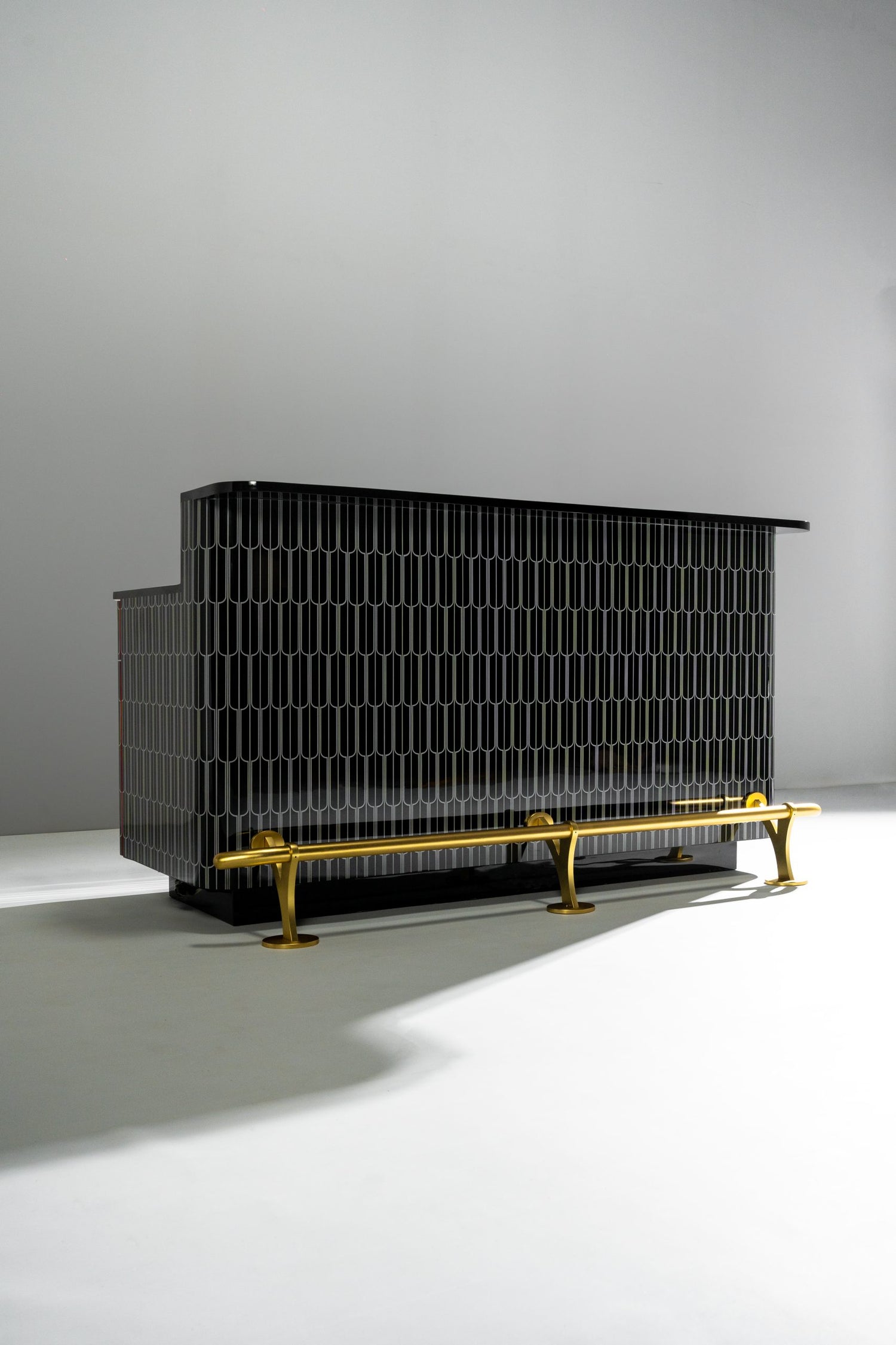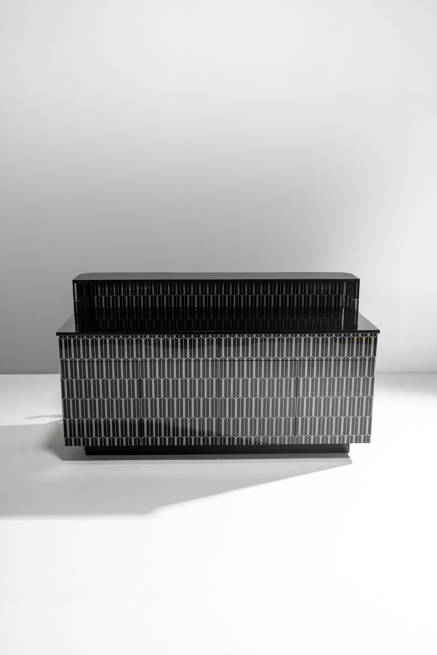 Rising bar is designed in resin inlay with drawers and shutters to hold a functional bar. The size can be customised to fit your space.RISE ABOVE THE REST