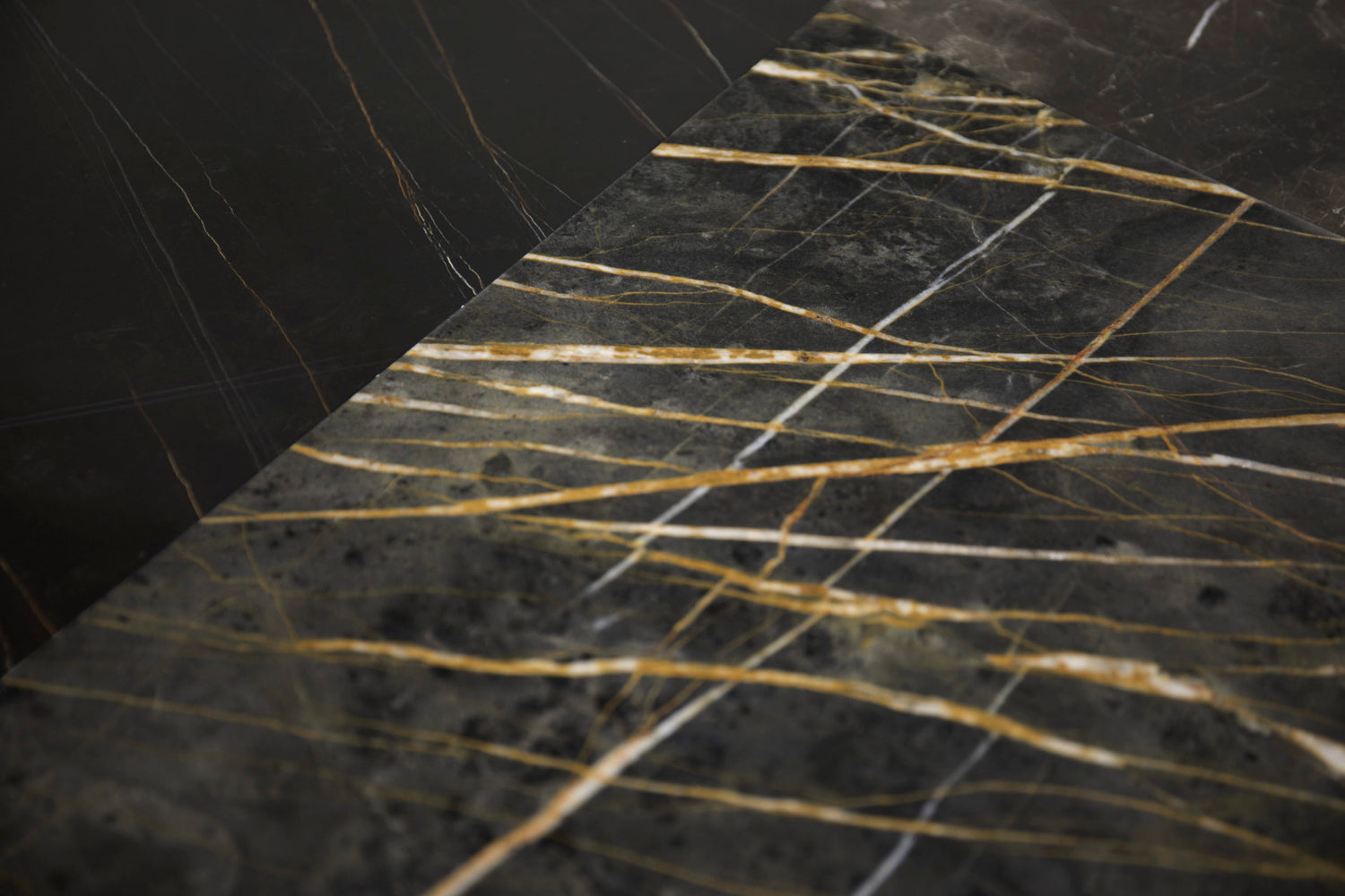 - Top: Polished black & gold granite, Sahara Noir marble, Italian gold marble, Golden & Spider marble, and New Imperador marble