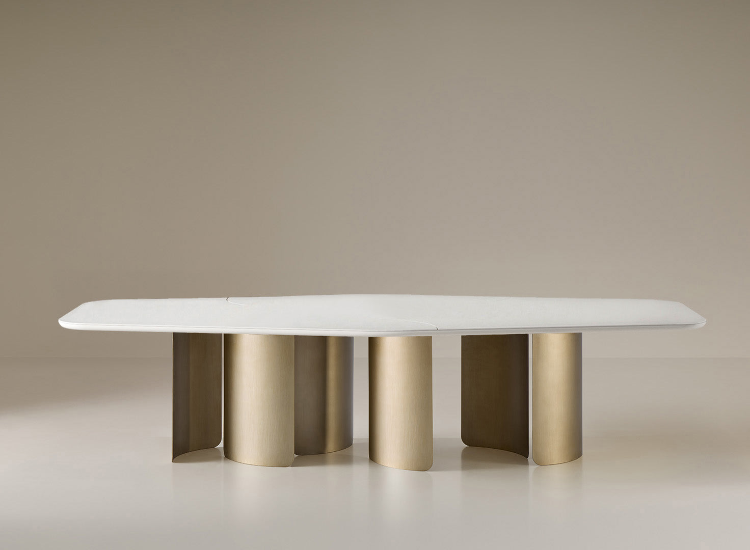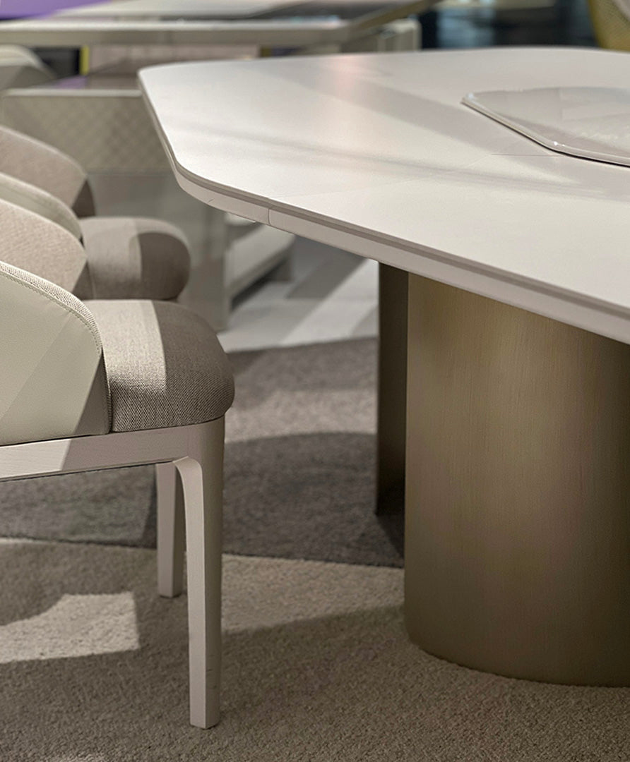 Crafted with a multi-piece tabletop that forms a striking geometric pattern, the Onda Dining Table comfortably seats up to 10 guests, making it ideal for both social gatherings and elegant family meals. This masterpiece balances bold design with functionality, offering a wide selection of high-quality finishes to suit your interior style.