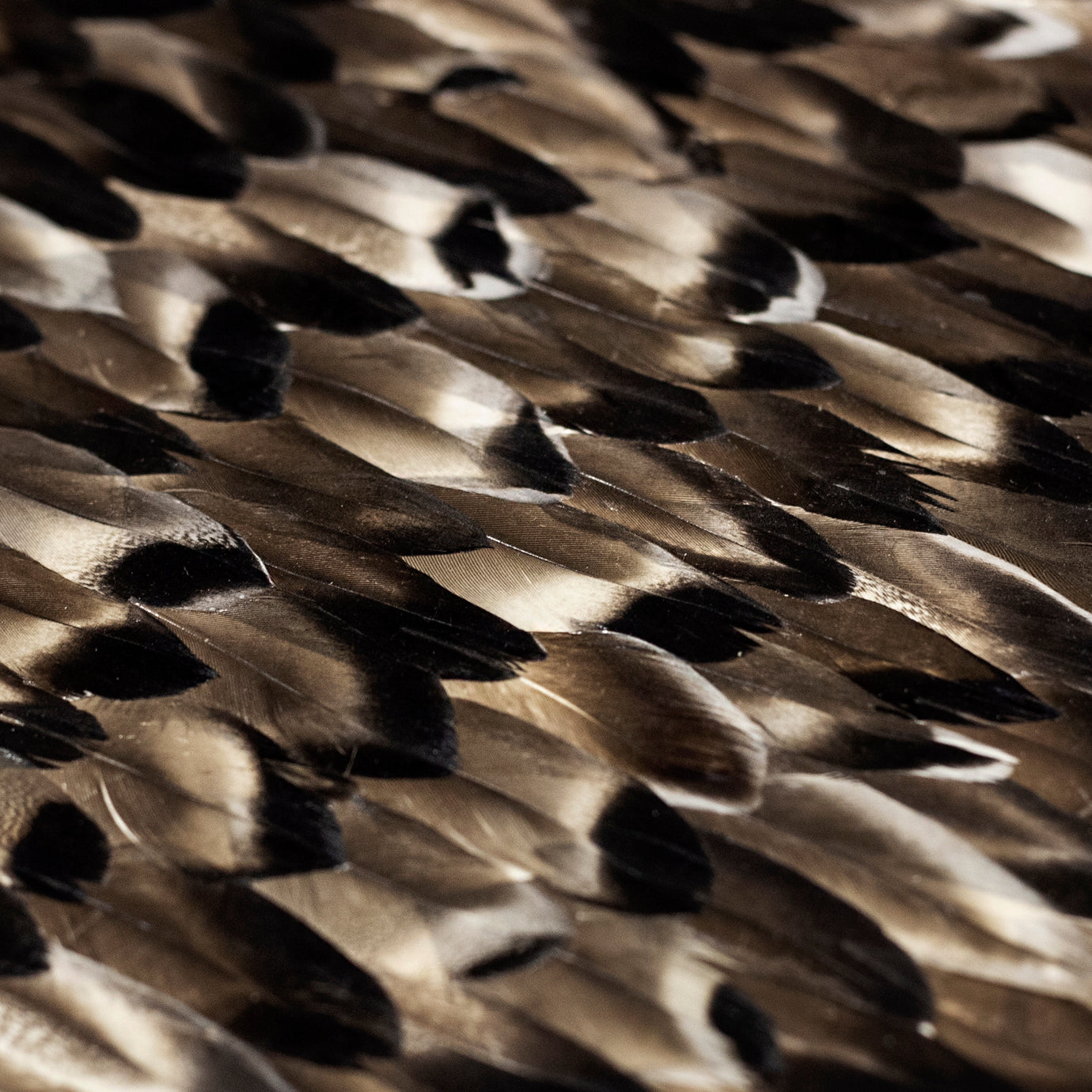 Smoky browns with hints of white and black define this beautiful natural feather wallcovering.