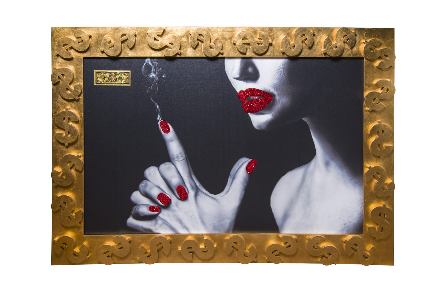 Printed canvas embellished with thousands of genuine Swarovski crystals