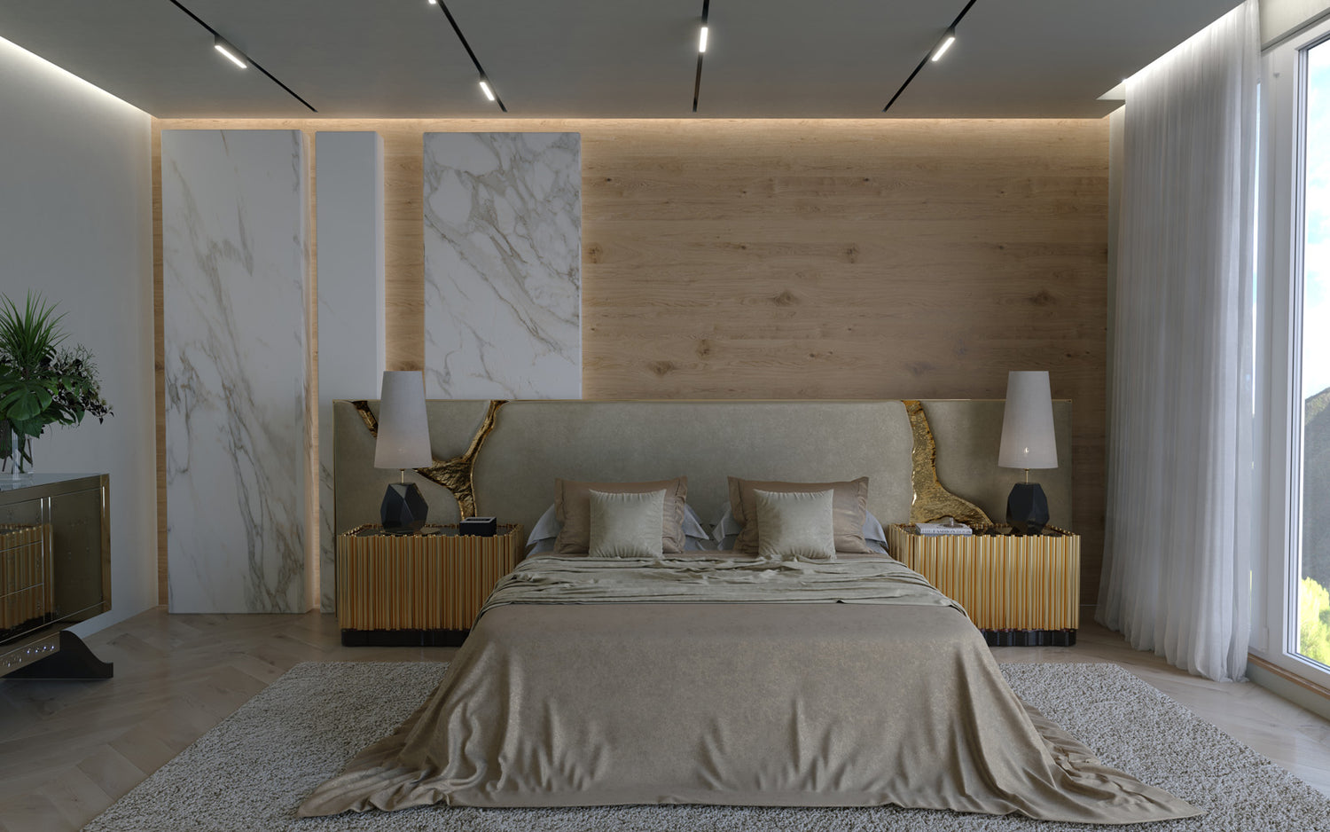 The Lapiaz Headboard by Boca do Lobo brings avant-garde artistry into the bedroom, transforming a functional piece into a statement of sculptural luxury. Inspired by the natural cracks formed in stone and ice, the design combines a smooth lacquered surface with striking fissures that reveal a radiant interior of polished brass.
