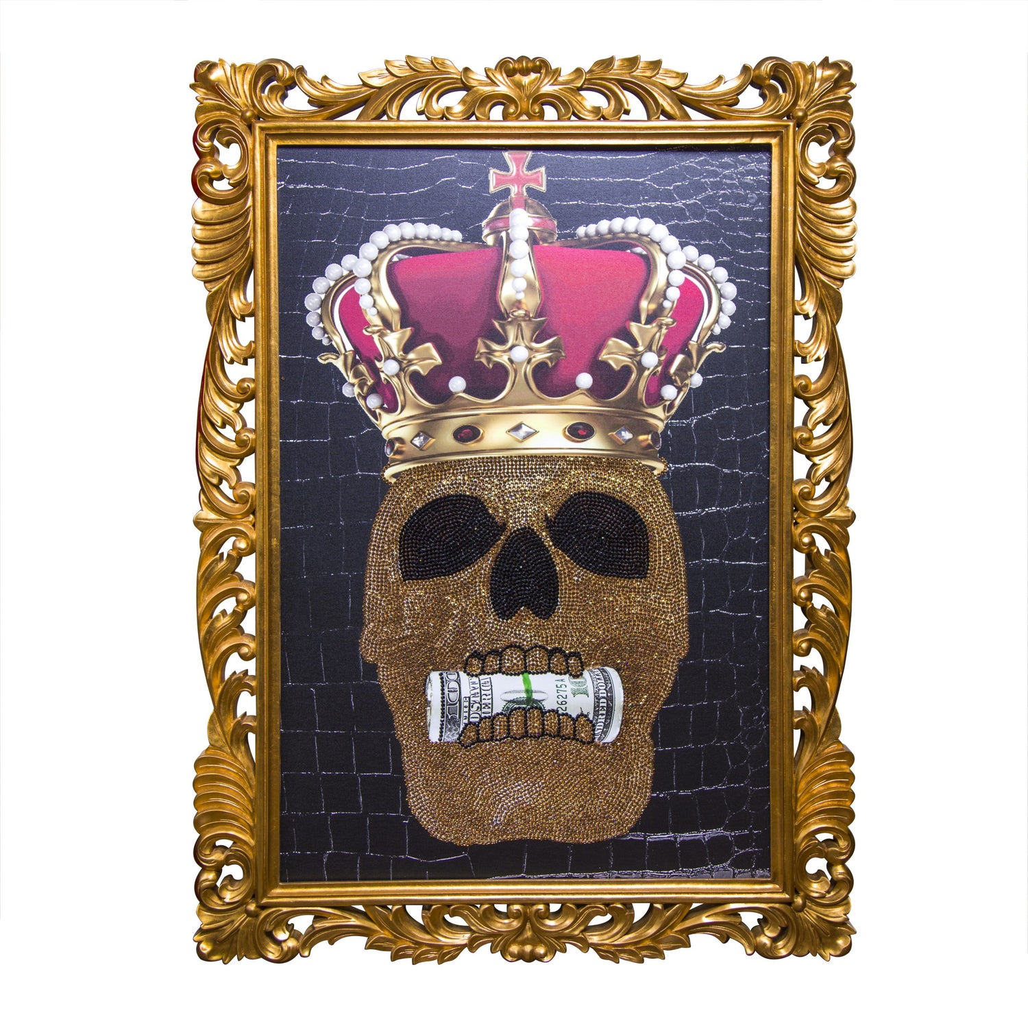 Printed canvas embellished with thousands of genuine Swarovski crystals