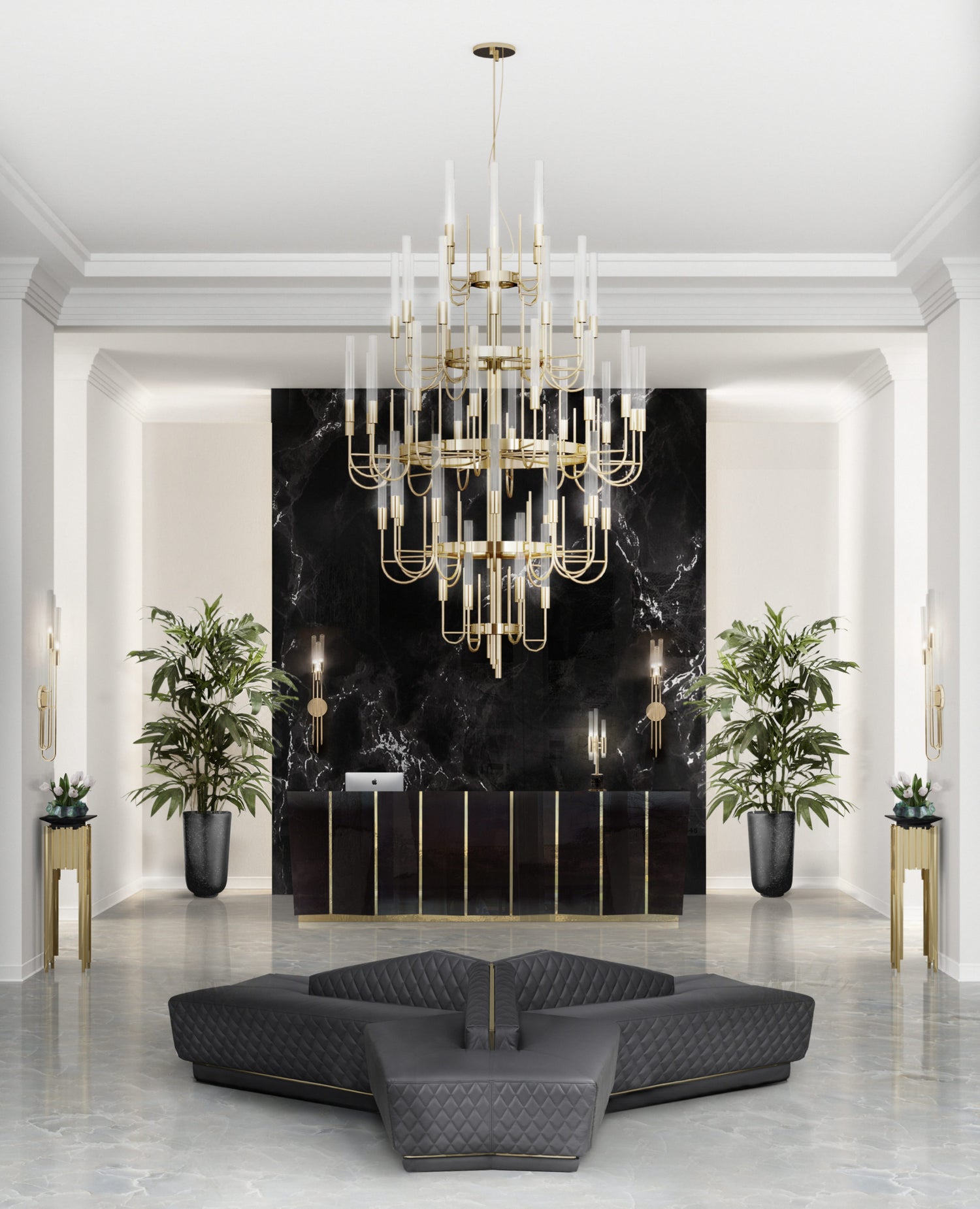 - Body: Grey leather, Polished brass & Black lacquer