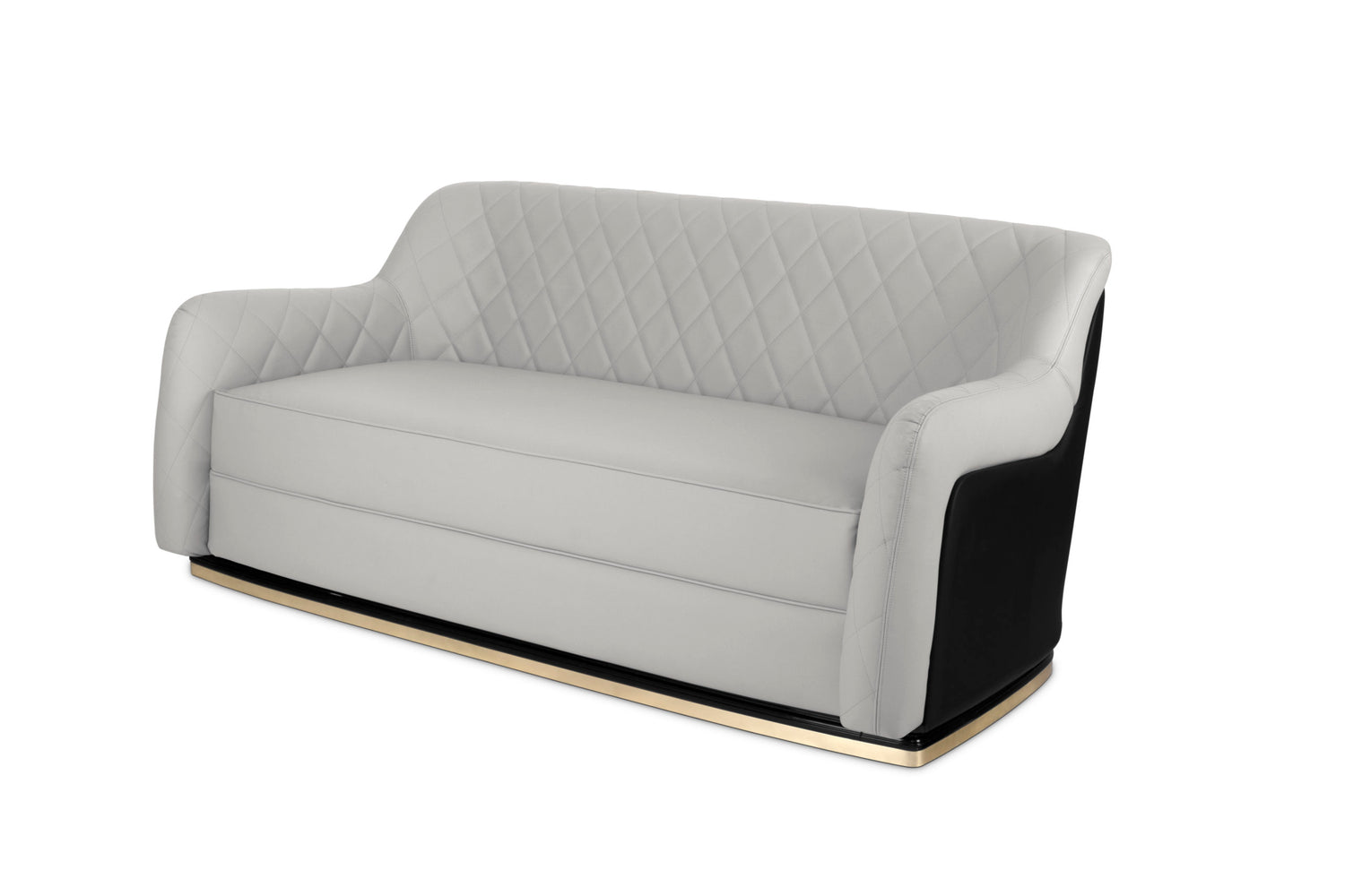 The Charla Sofa is a sophisticated blend of timeless elegance and modern design. Featuring luxurious leather upholstery and a polished brass and lacquered wood base, this comfortable sofa is perfect for living rooms, dressing rooms, or commercial spaces such as boutiques. Its versatile style makes it a striking addition to any space.