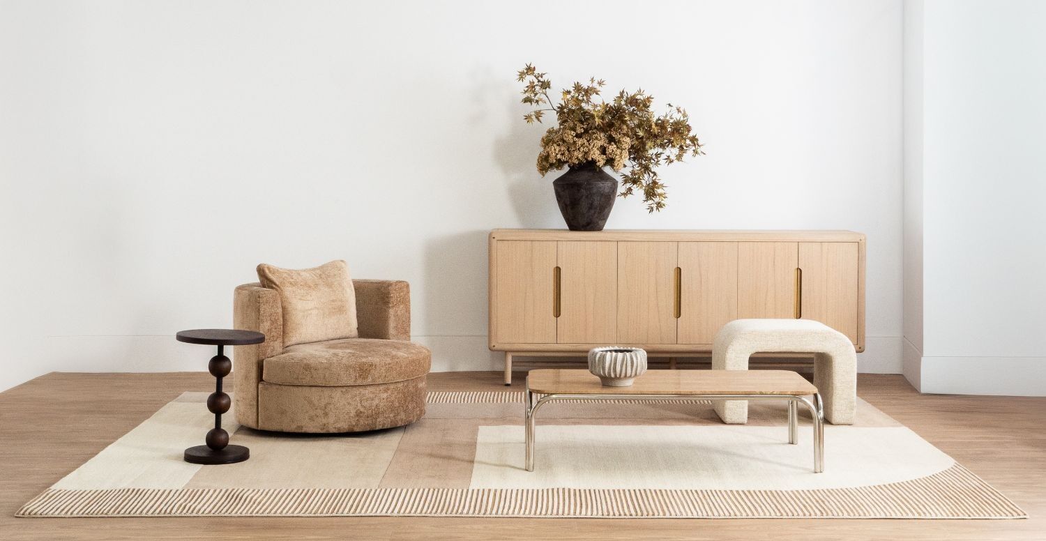 Featuring a softly curved, multi-layered design constructed from seven harmonious colours, the Ribeira Rug brings a subtle yet impactful sophistication to large living spaces. Its oversized 280 × 380 cm scale makes it ideal for anchoring open-plan rooms and pairing with all Cocolea modular lounge configurations.