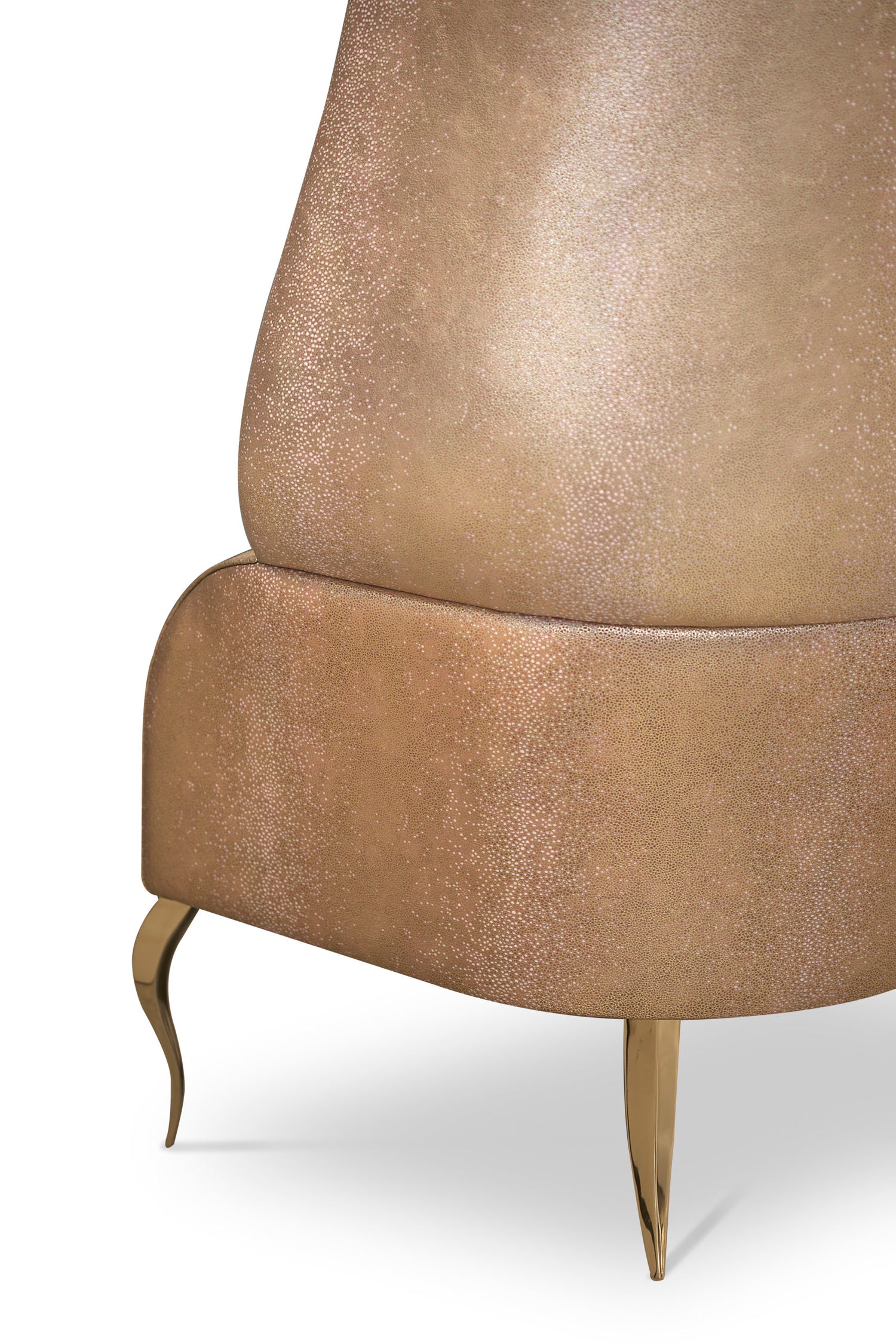 As a tribute to Dorothy Draper’s high style, we took the classic Drapesse chair and added a bit of the KOKET lavish & sensuous edge. Complete with a flirty new makeover, her exterior is adorned with our watercolor Terra leather transitioning to a pale pink velvet interior and resting on curvy polished brass legs.