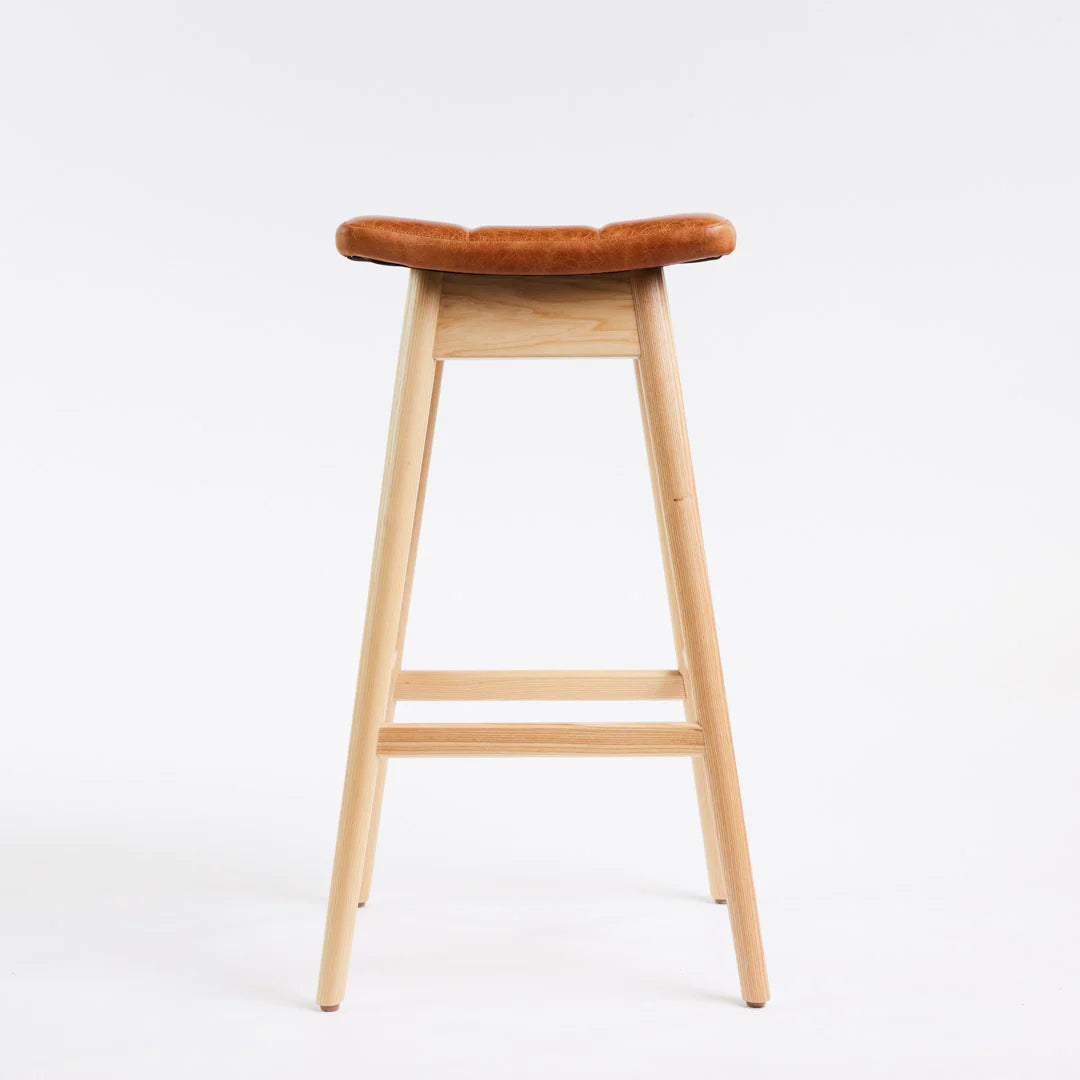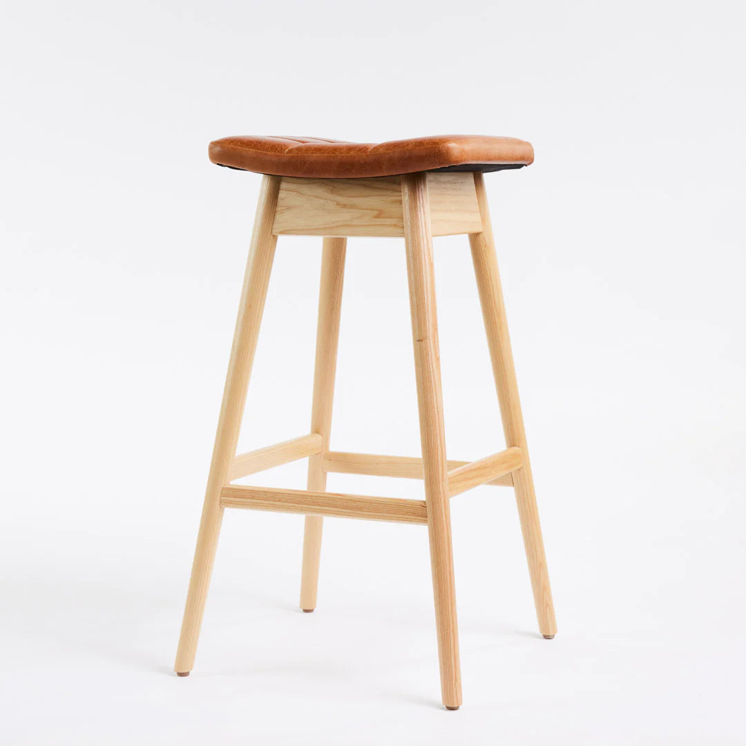 The TH Brown Martelle bar stool was first manufactured in the early 1960s and remains an iconic, timeless Australian design to this day. The beautifully sculpted fixed seat, angled legs, and hand-stitched upholstery remain as contemporary as the day they were first designed.