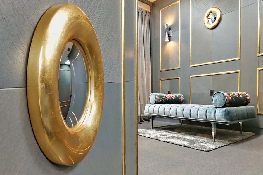Materials: Mirror, high gloss 24ct gold leaf on wood