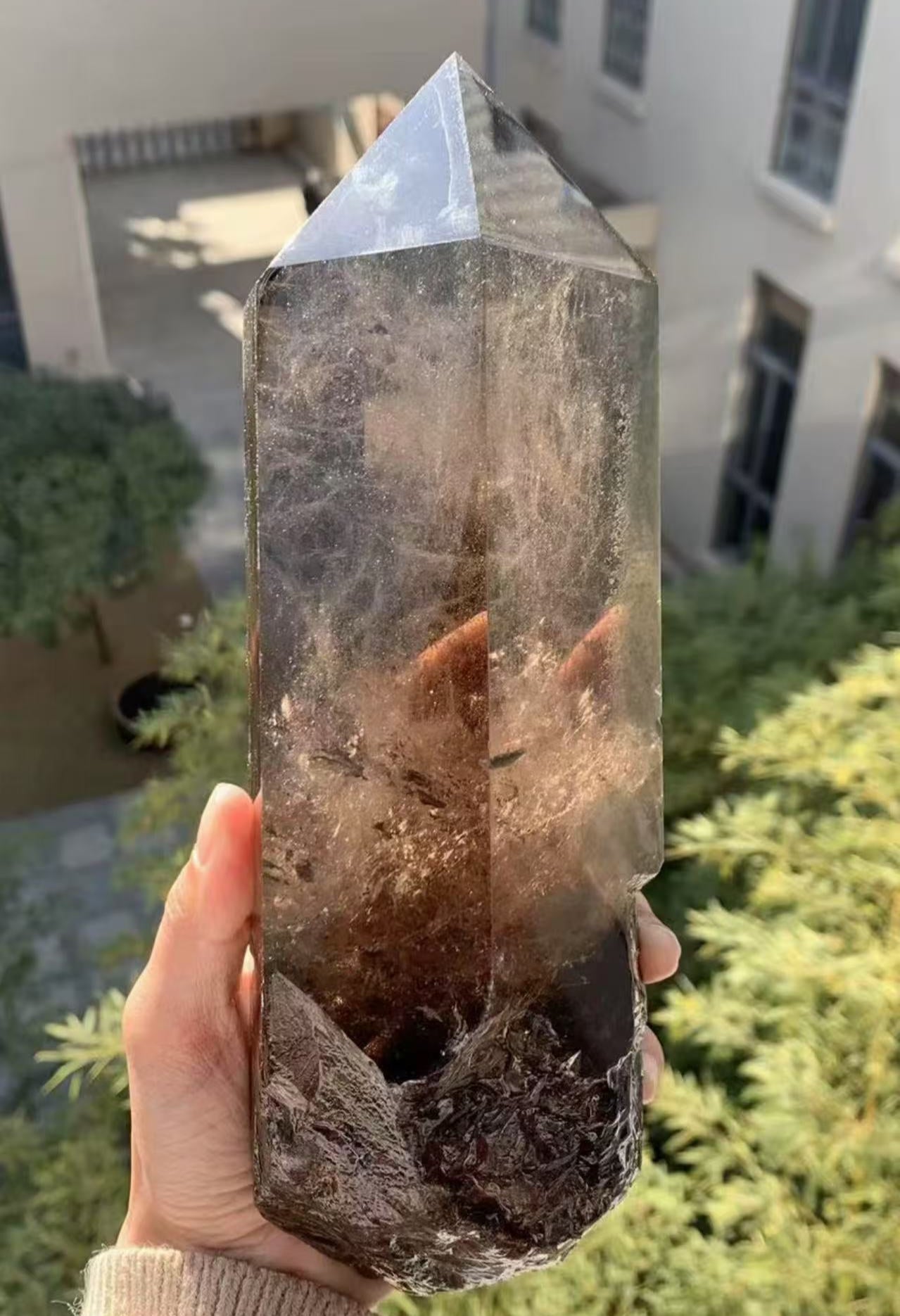 Material: Real Brazilian Smokey Quartz, Brushed Brass