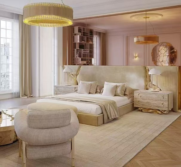 Elevate your bedroom with the Incanto Travertine Veneer Luxury Bedside Table, a statement piece that blends sculptural artistry with refined materiality. Inspired by high-end European design, this designer bedside table features a fully wrapped travertine-look veneer finish, showcasing soft natural veining and warm neutral tones that complement both modern and classic interiors.