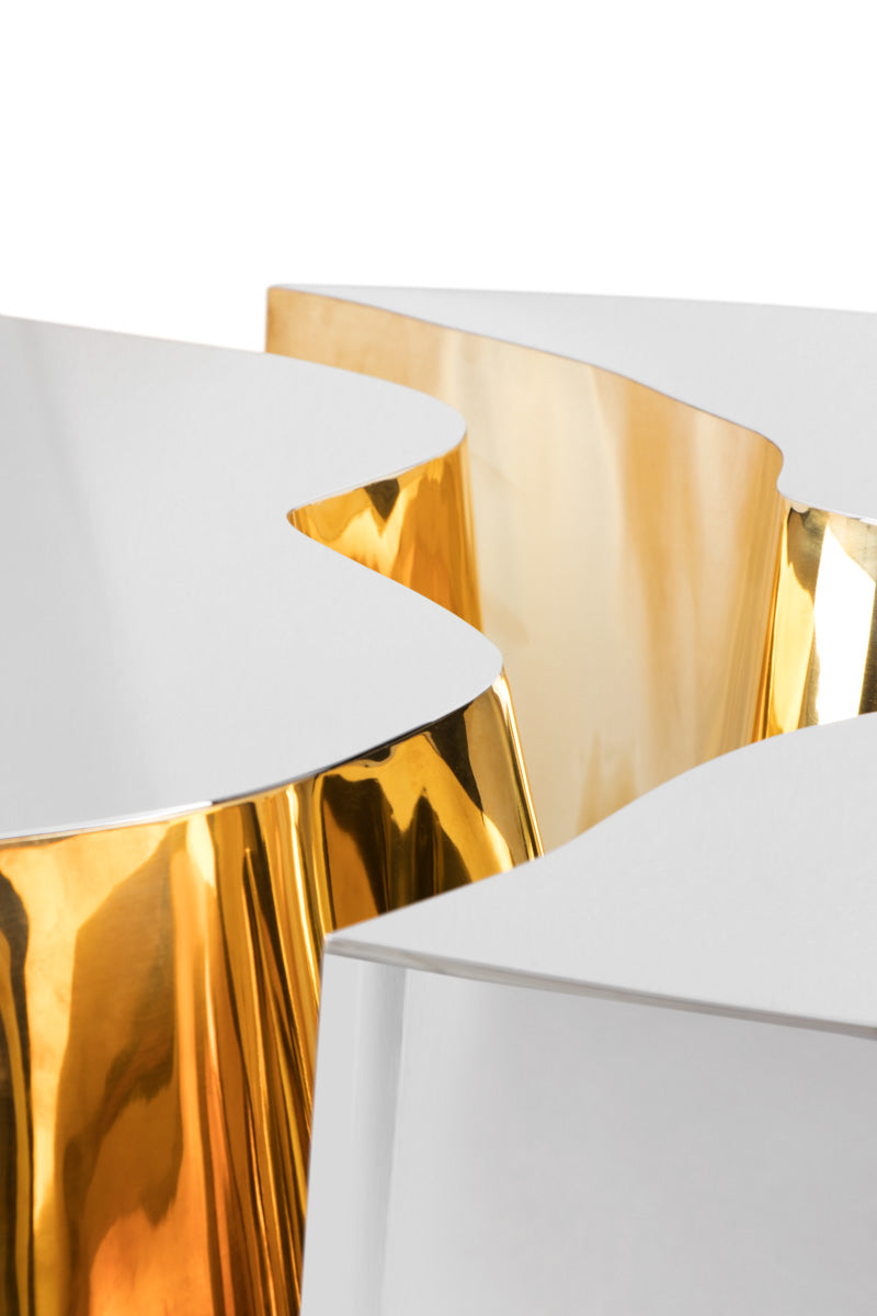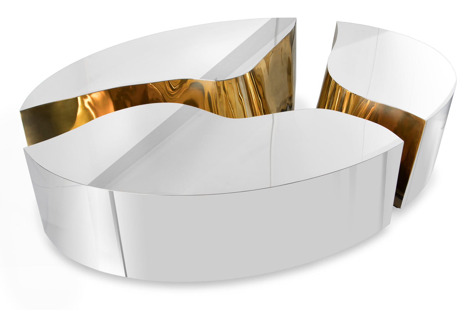 The Lapiaz Oval Table by Boca do Lobo is a breathtaking centrepiece that celebrates the beauty of natural imperfections. Inspired by the organic cracks that form in stone and ice, this sculptural dining table features a polished stainless steel exterior that reveals a glowing interior of molten-like brass. The contrast of smooth, clean lines with fractured detail creates an unforgettable statement of contemporary design.
