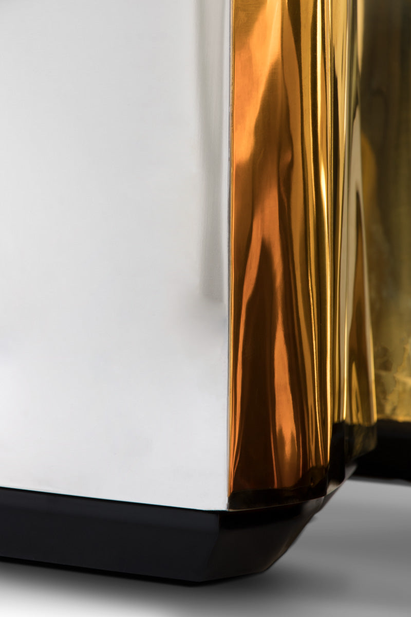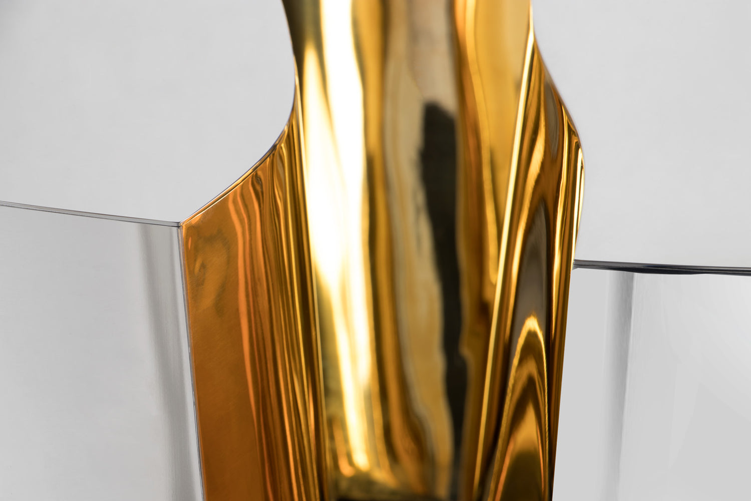 – Sculptural polished brass interior with mirrored stainless steel exterior