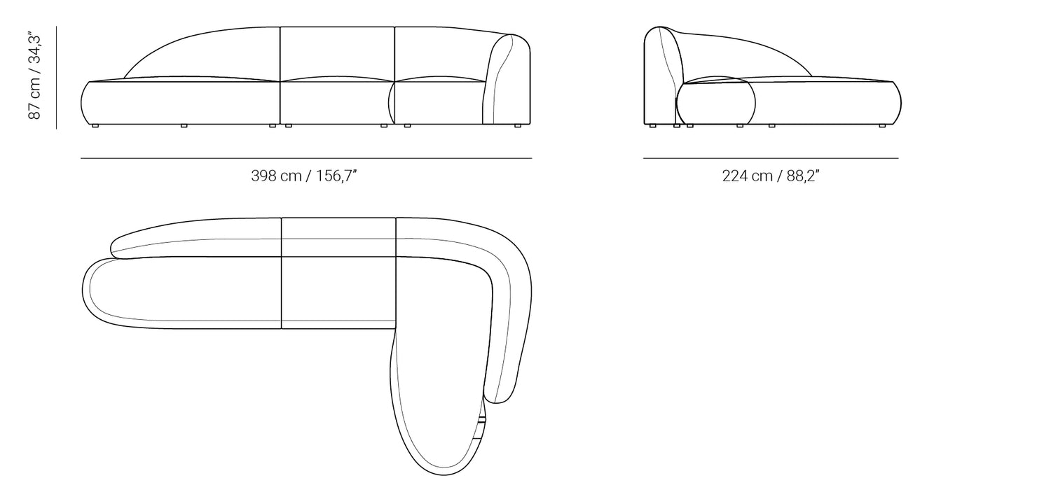 Designed by Jacobo Ventura, the Beluga Belt Modular Sofa draws inspiration from the graceful curves of the whale, bringing an elegant fusion of organic form and contemporary style into your living space. Featuring a right-hand chaise longue configuration, this modular sofa embodies both distinction and adaptability — effortlessly reshaping itself to suit various layouts and room settings.