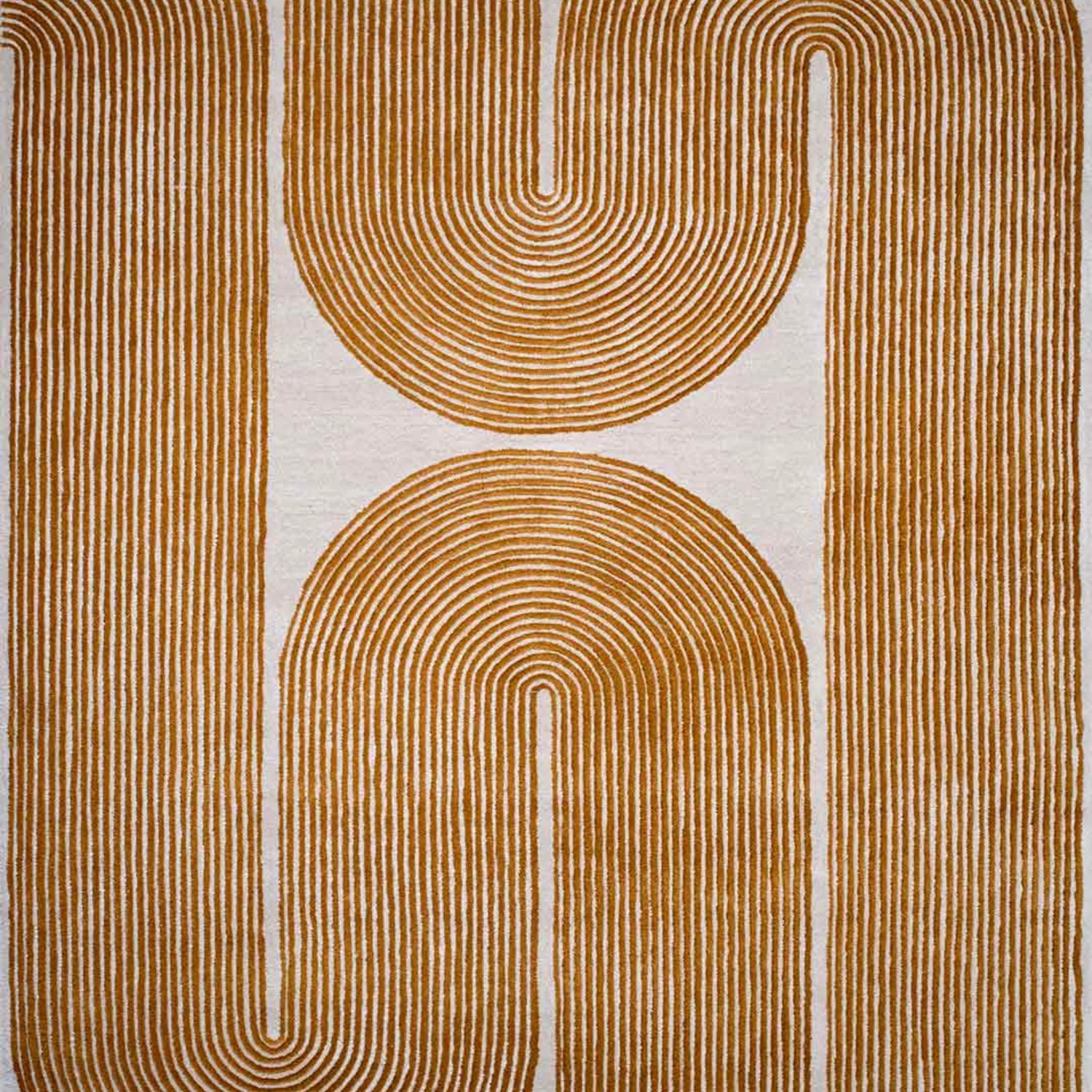A textured rug design in a masterfully crafted combination of cut pile and loop pile in natural wool. The Viper Rug collection offers a modern palette of gold and beige, inky blue and grey and dark olive green and grey.
