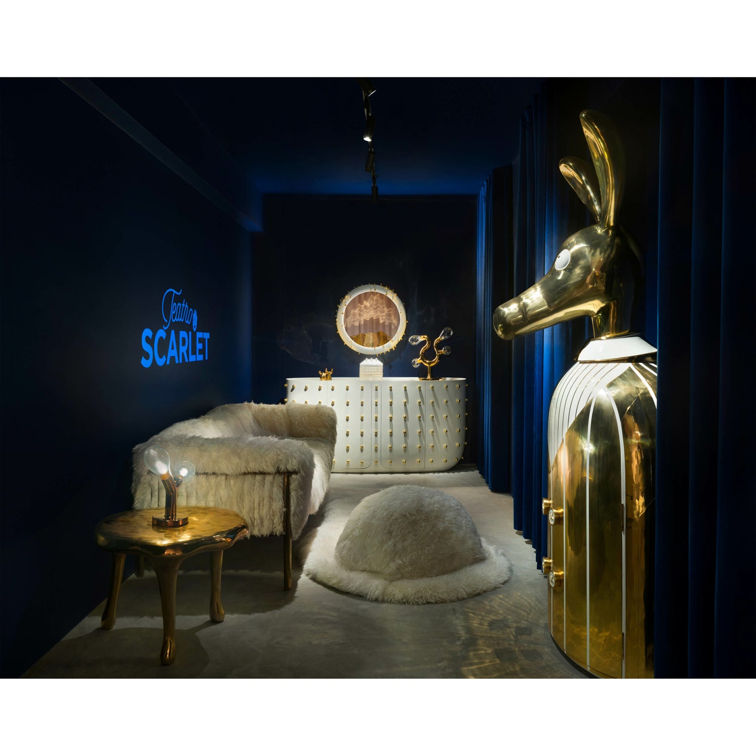 The Coronum Rug is a luxurious and playful sheepskin rug, complete with a pouffe for added comfort and relaxation.