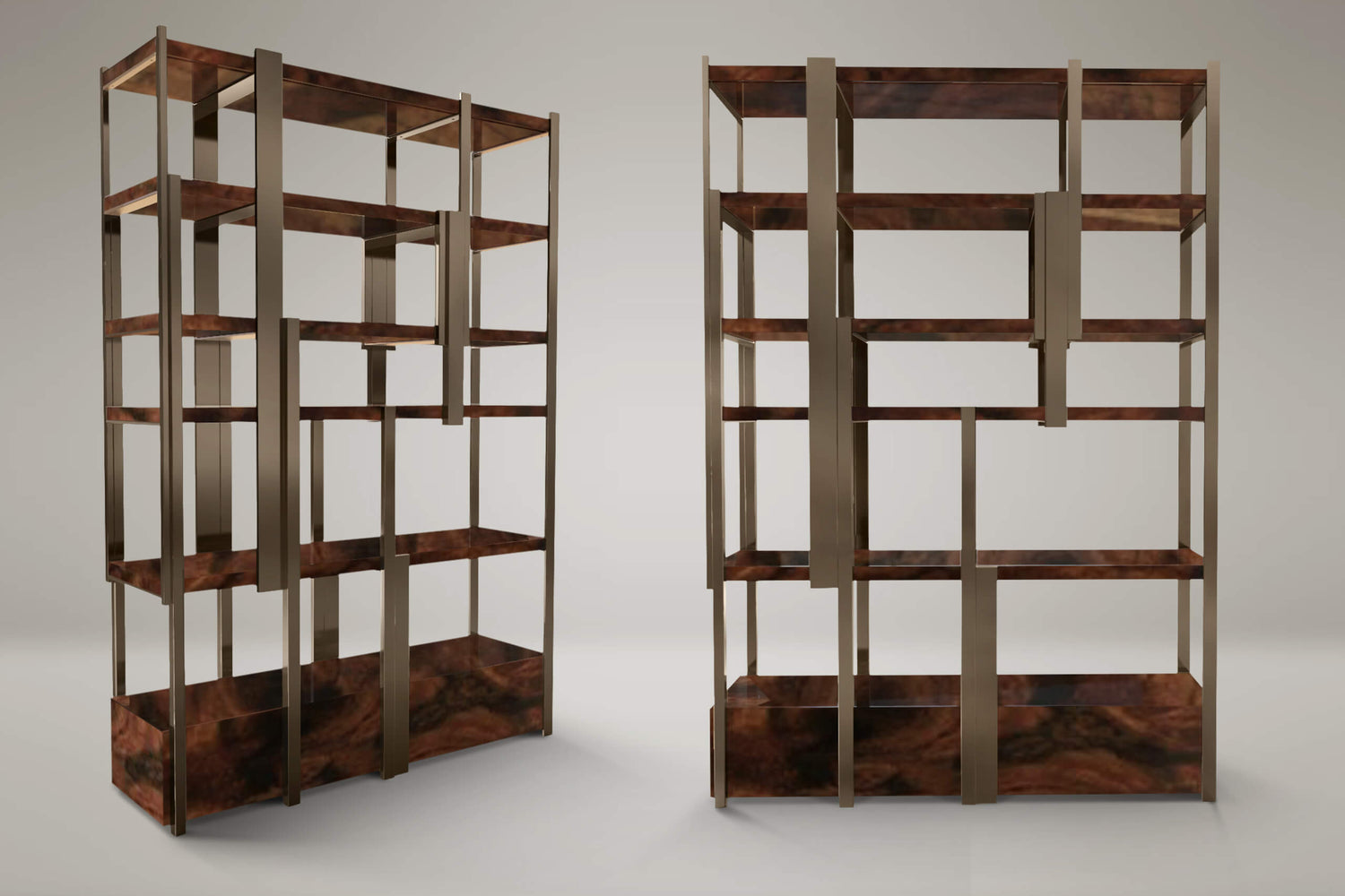 Caffeine is one of the biggest components of coffee: strong, exotic, full-bodied and delicate. The Caffeine Bookcase is the ideal piece for your modern and contemporary living room, providing elegance and space with its walnut wood matte and bronze matte finishes. The bookcase has modular feet that adapt quickly to any room.
