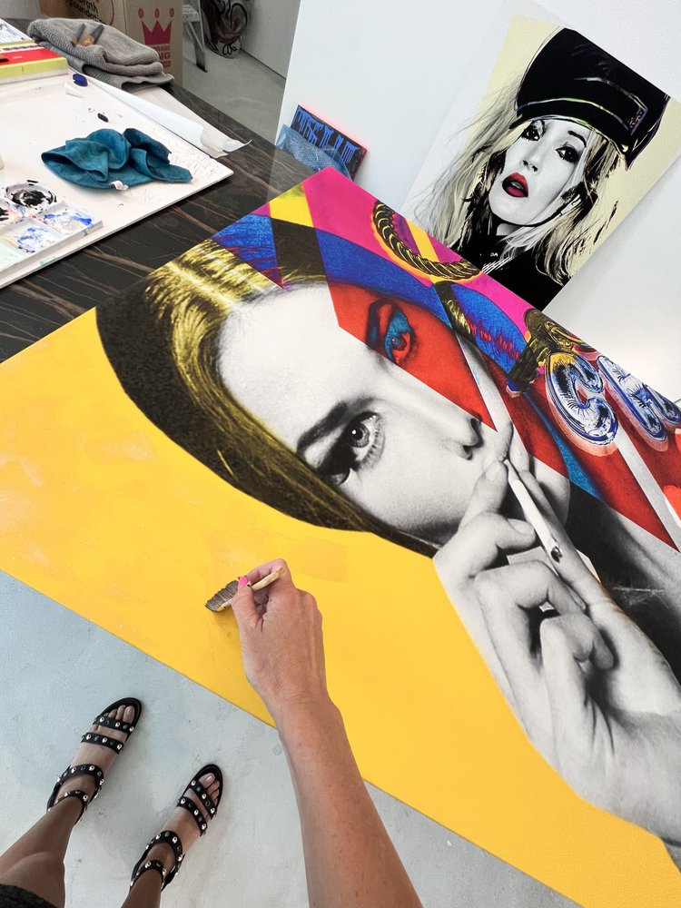 Miss Morpho is a unique artwork created through the meticulous application of acrylic paint, oil sticks, and 24k gold leaf on an archival museum-grade canvas print.