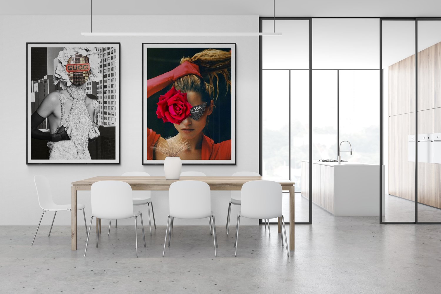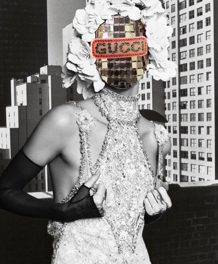 This is an original artwork by Amanda Johnstone using digital collage and layering image from collected fashion magazines photographed by myself for beautiful grainy texture. Collages multiple elements