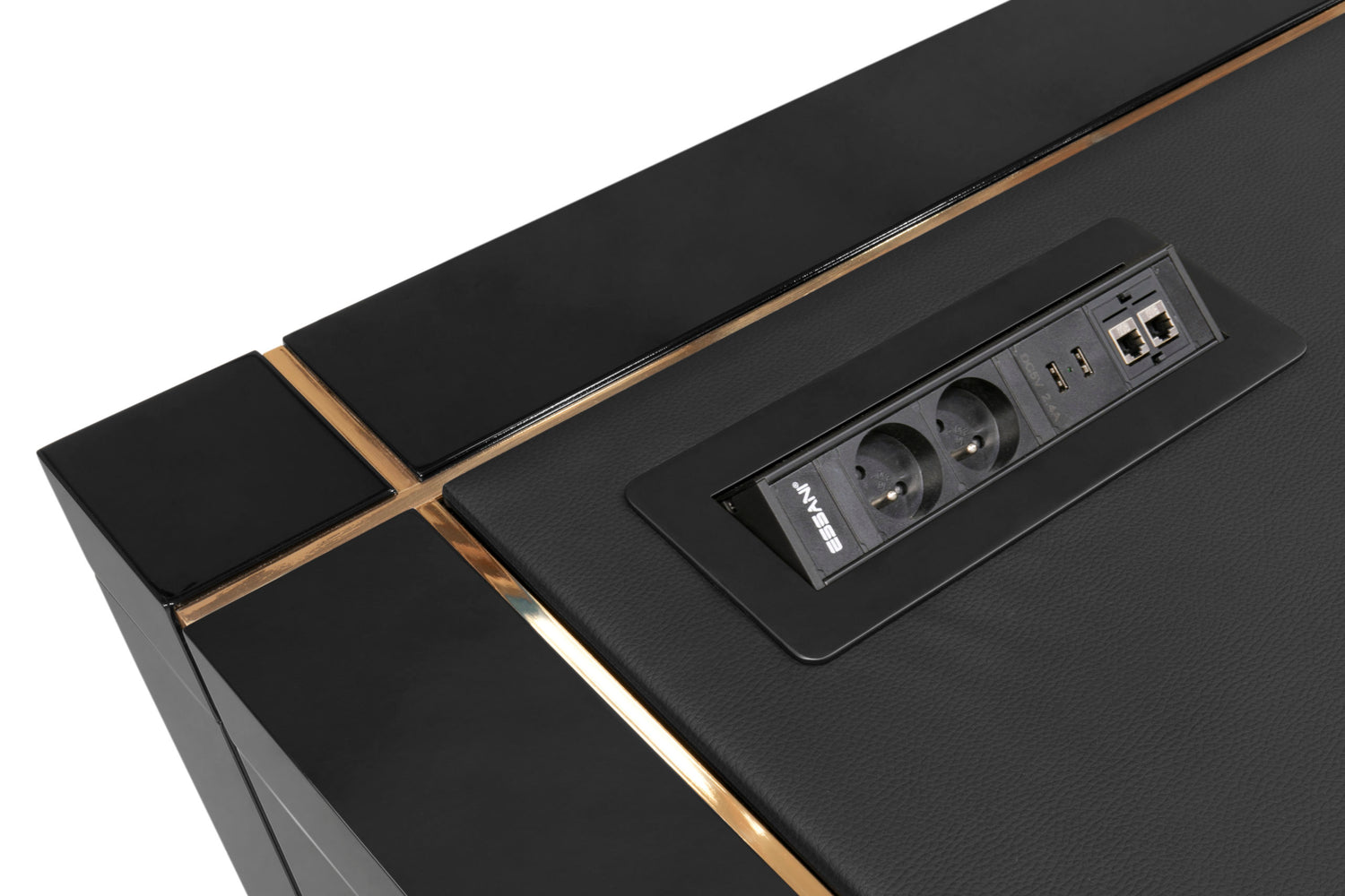 Inspired by Greek mythology, the Apotheosis Desk is a bold statement piece that embodies luxury, sophistication, and functionality. Designed to elevate any workspace, this meticulously crafted office desk features a seamless blend of premium materials and is equipped with a USB port for modern accessibility. A true masterpiece of craftsmanship and innovative design.