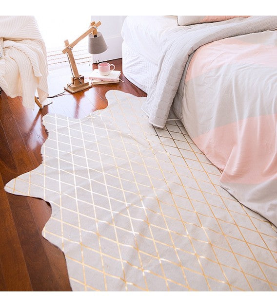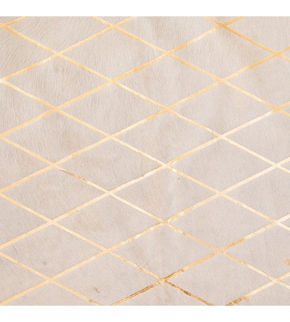The Arlequin hide is a design collaboration with our sister brand, Amigos de Hoy. Made from premium quality natural cowhide, it features an elegant metallic devoré technique in a fine diamond pattern, adding sophistication to any interior.