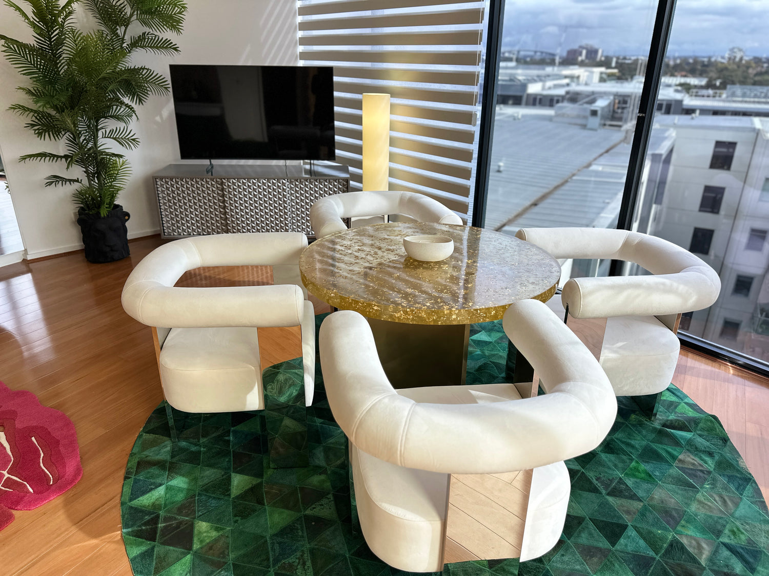 Polished chrome frame, commercial-grade velvet (customisable), optional leather upholstery