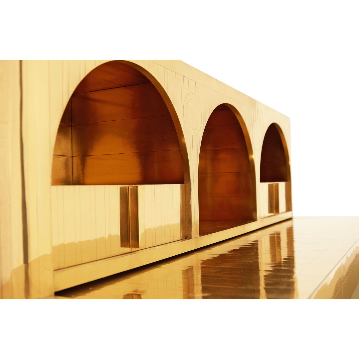 The General Oro is a chic study table in brass, with an extendable writing top and small details, reminiscent of a traditional des